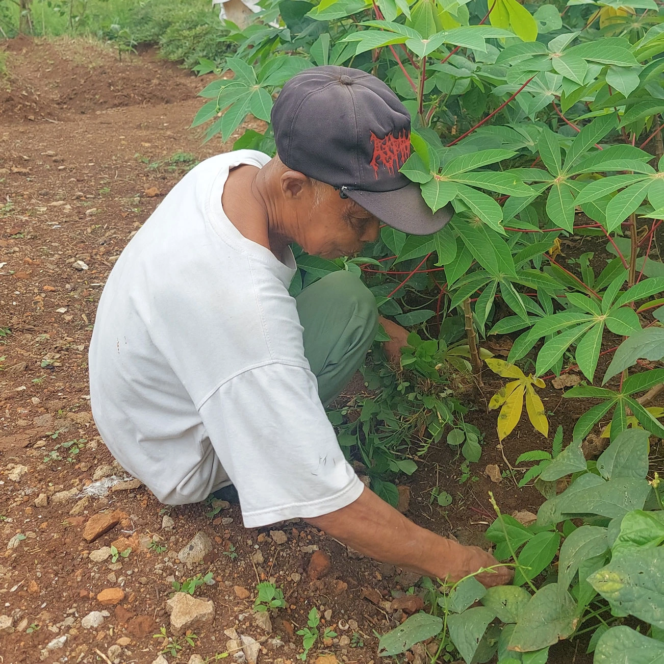 “Kebetulan di belakang rumah abah ada sedikit lahan kosong milik orang lain yang bisa abah manfaatkan untuk menanam. Jadi, abah pake buat nanam singkong dan kacang panjang, nanti hasil panennya bisa buat konsumsi abah sama si emak di rumah, buat ganjel perut,” Ucap Abah Katiman