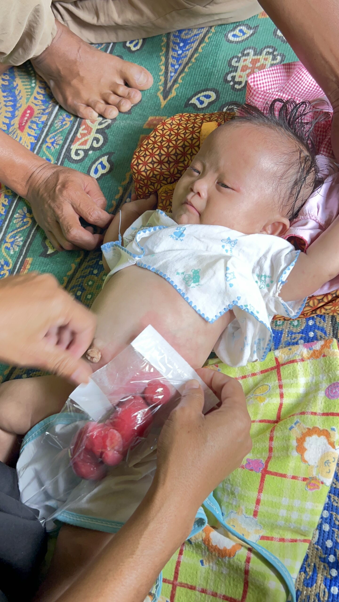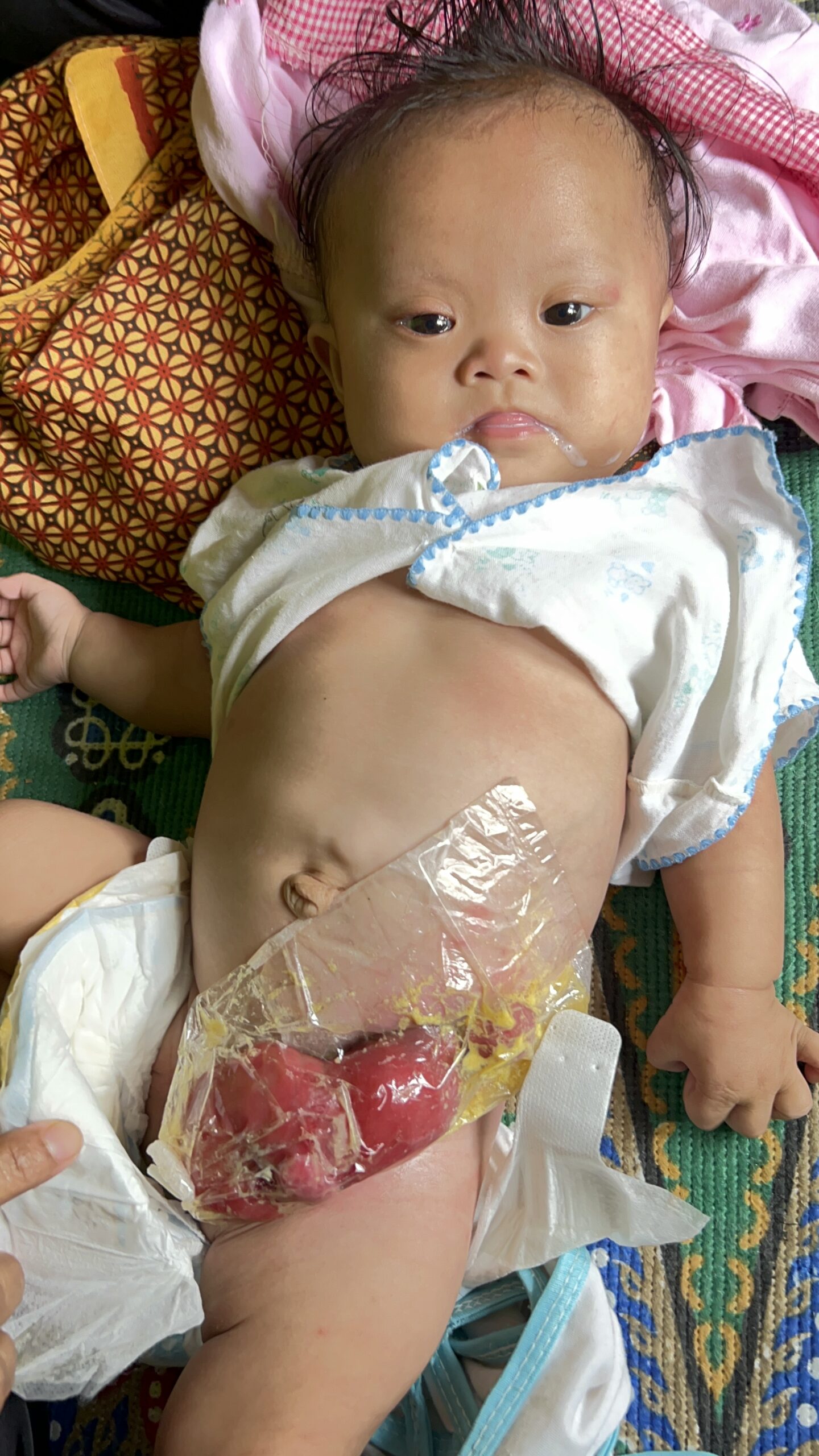 Usus Adik Adhifa (6 bulan) terburai di luar perutnya, dan kini kondisinya makin memburuk karena komplikasi.