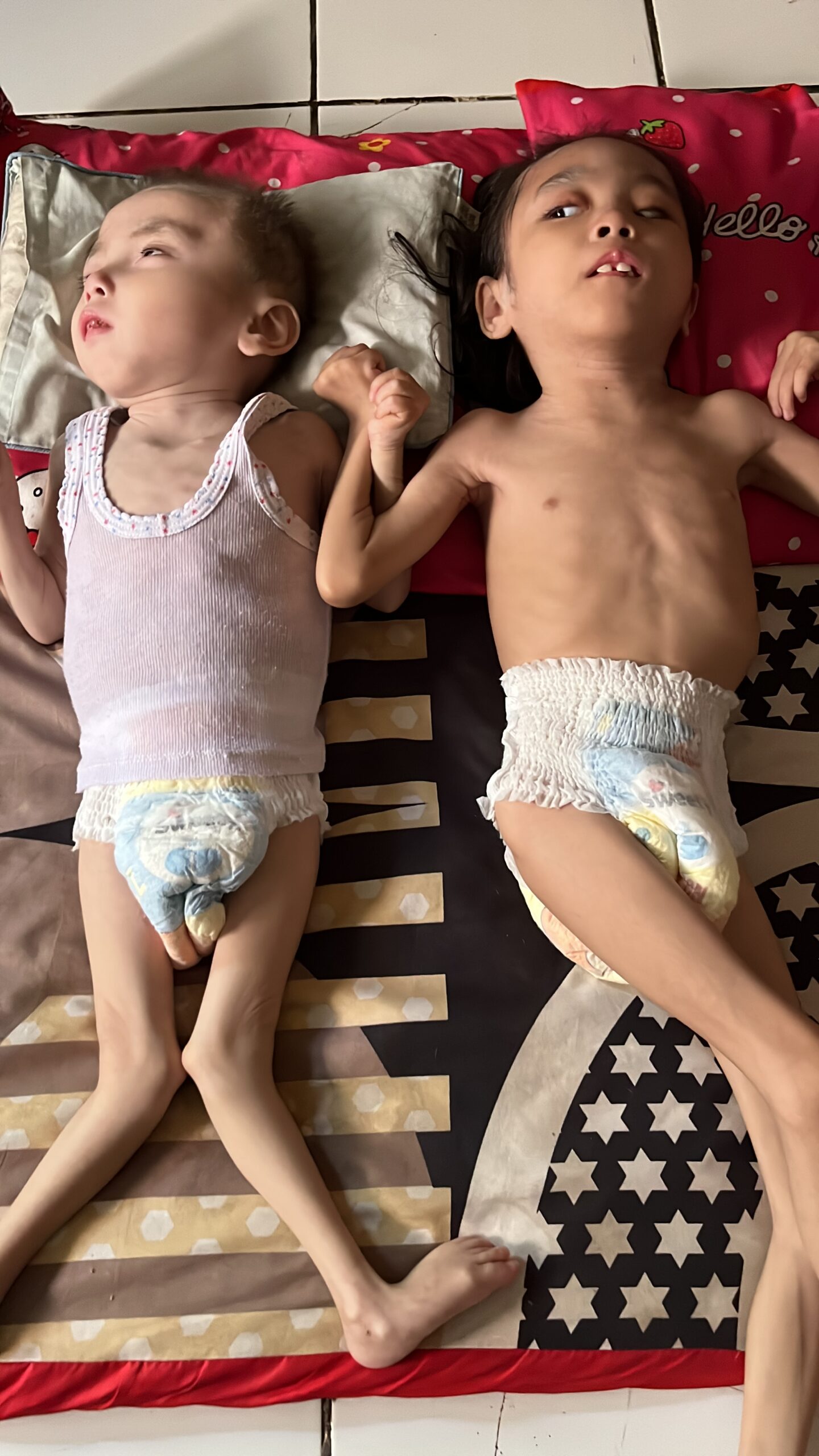 Kondisi Alka dan akhtar saat ini kurang baik,mereka mengalami kejang sehari bisa sampai 20-30 kali,dan dokter menyarankan untuk dilakukan fisioterapi juga menkonsumsi obat secara terus menerus