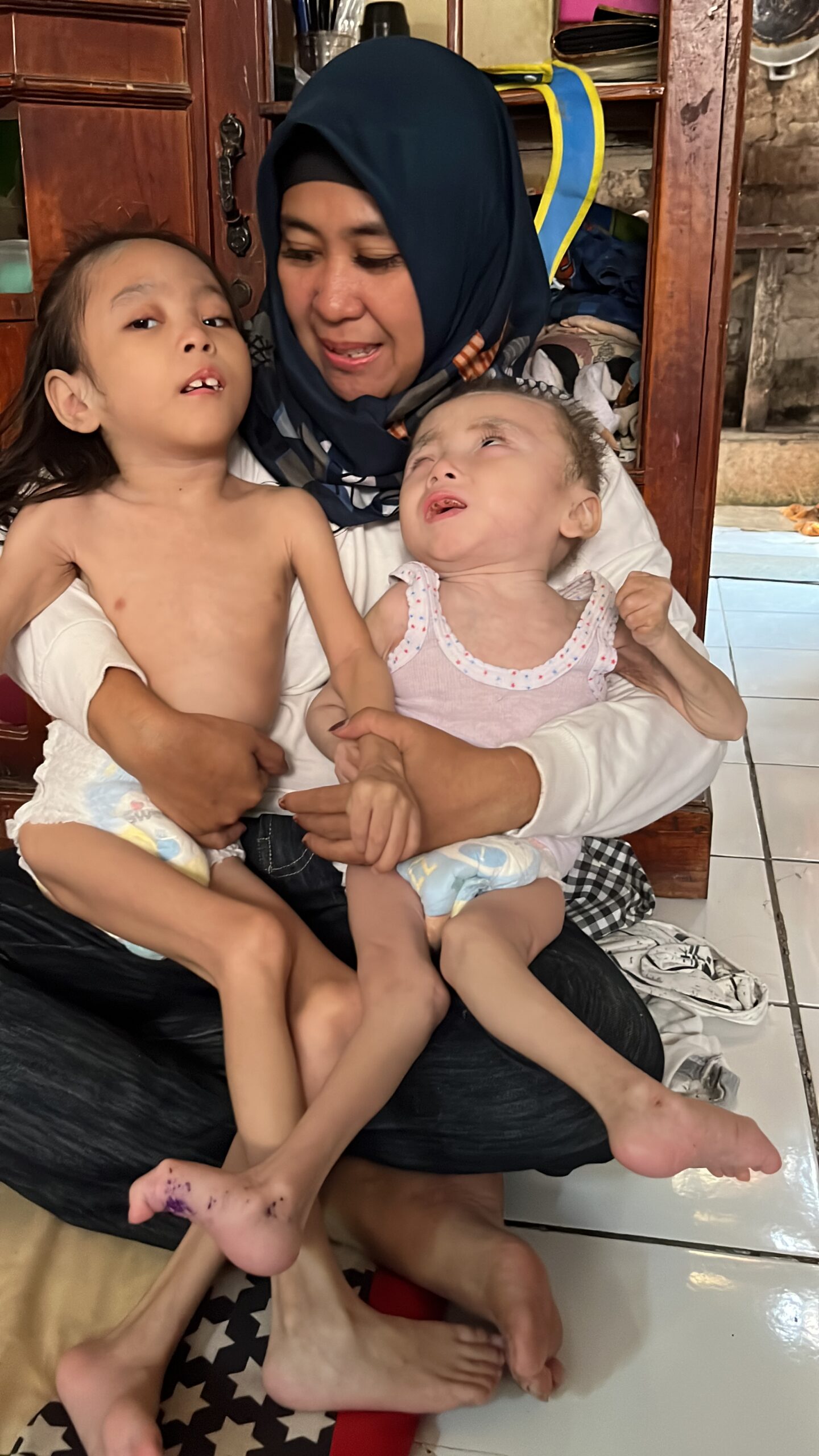Beliau bekerja keras demi menghidupi kedua anak disabilitasnya selama ini yang menderita cerebral palsy,kelumpuhan,syndrome mermaid dan seabrek penyakit lainnya.