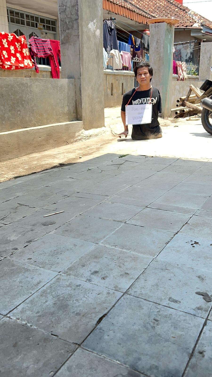 Kalau sudah lelah Apan menggunakan tubuh nya untuk berjalan dengan cara menggelinding,karena tangan nya sering sakit ketika sudah selesai jualan pulsa..tidak banyak hanya 1-3 orang saja yang membeli pulsanya Apan dengan keuntungan 1000-2000 per isi pulsa.
