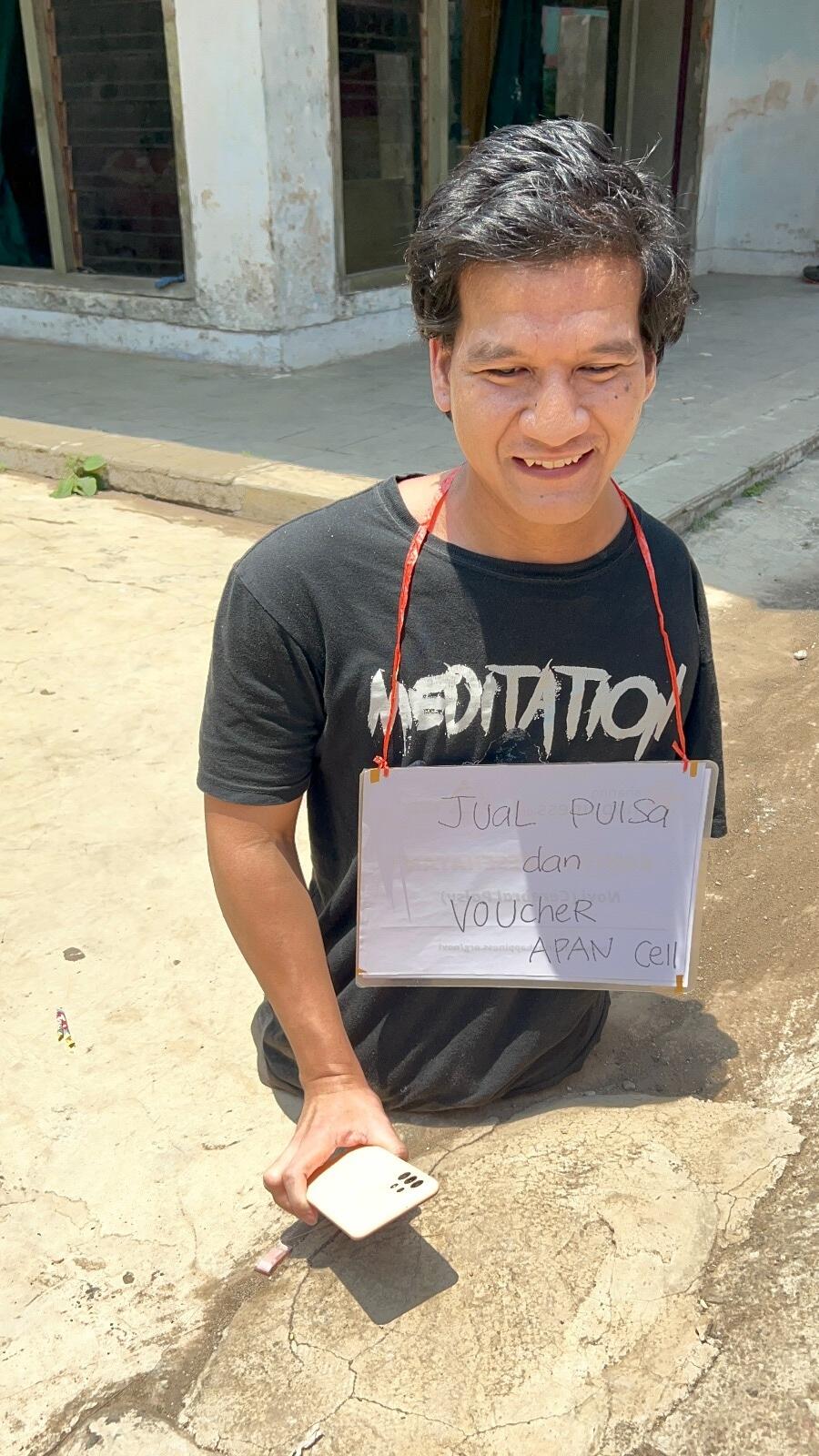 Disamping segala keterbatasan yang dialami oleh Apan, ia memiliki semangat yang tinggi untuk bisa terus bekerja dan produktif dalam menjalani hari-hari nya sebagai upaya membantu meringankan beban ibunya dengan cara Jualan pulsa keliling,pulsa tersebut Apan jual untuk keperluan sehari hari.