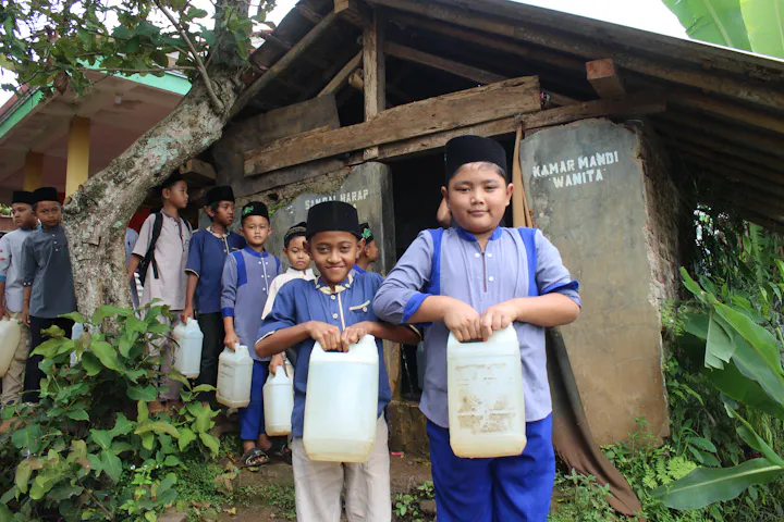 Sementara jika air kolam ikan kering, santri pun harus jalan sejauh 1KM untuk mengambil air bersih. Mereka gotong royong bergantian bawa air bersih dengan derigen untuk digunakan bersama di Rumah Qur'an. Meski hal ini sempat menghambat rutinitas mereka belajar Al Quran, tapi mereka tetap semangat dan tak berkeluh kesah.