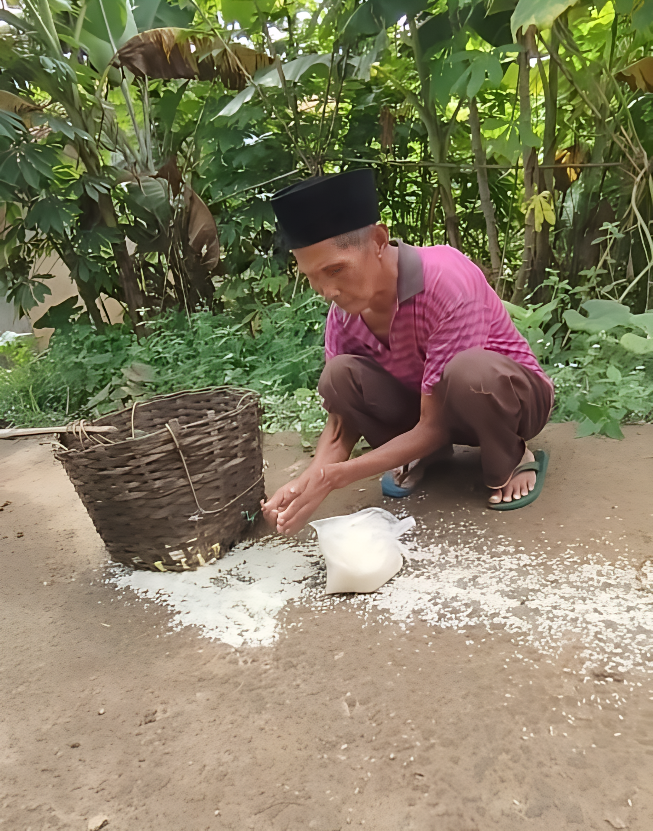Abah, seorang penjual pisang keliling, baru saja selesai membeli beras di warung tetangga. Namun, tak lama setelah berbelanja, ia terkejut melihat plastik berasnya sobek, karena tertusuk oleh anyaman bambu. Beras-beras yang baru saja dibeli tumpah berhamburan di jalan, dan Abah terlihat kebingungan. Aku yang kebetulan berada di dekatnya berusaha menolong, namun saat aku mengajaknya berbicara, aku merasa ada yang berbeda dengan Abah. Ternyata, Abah mengalami gangguan pendengaran.