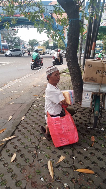 Tak ada kios, maupun kendaraan sebagai penunjang pa Bejo dalam menjemput rezeki, hanya sepedah tua teman perjalannya menempuh kiloan meter menjajakan tisu berkeliling mulai jam 9 pagi hingga petang hari.