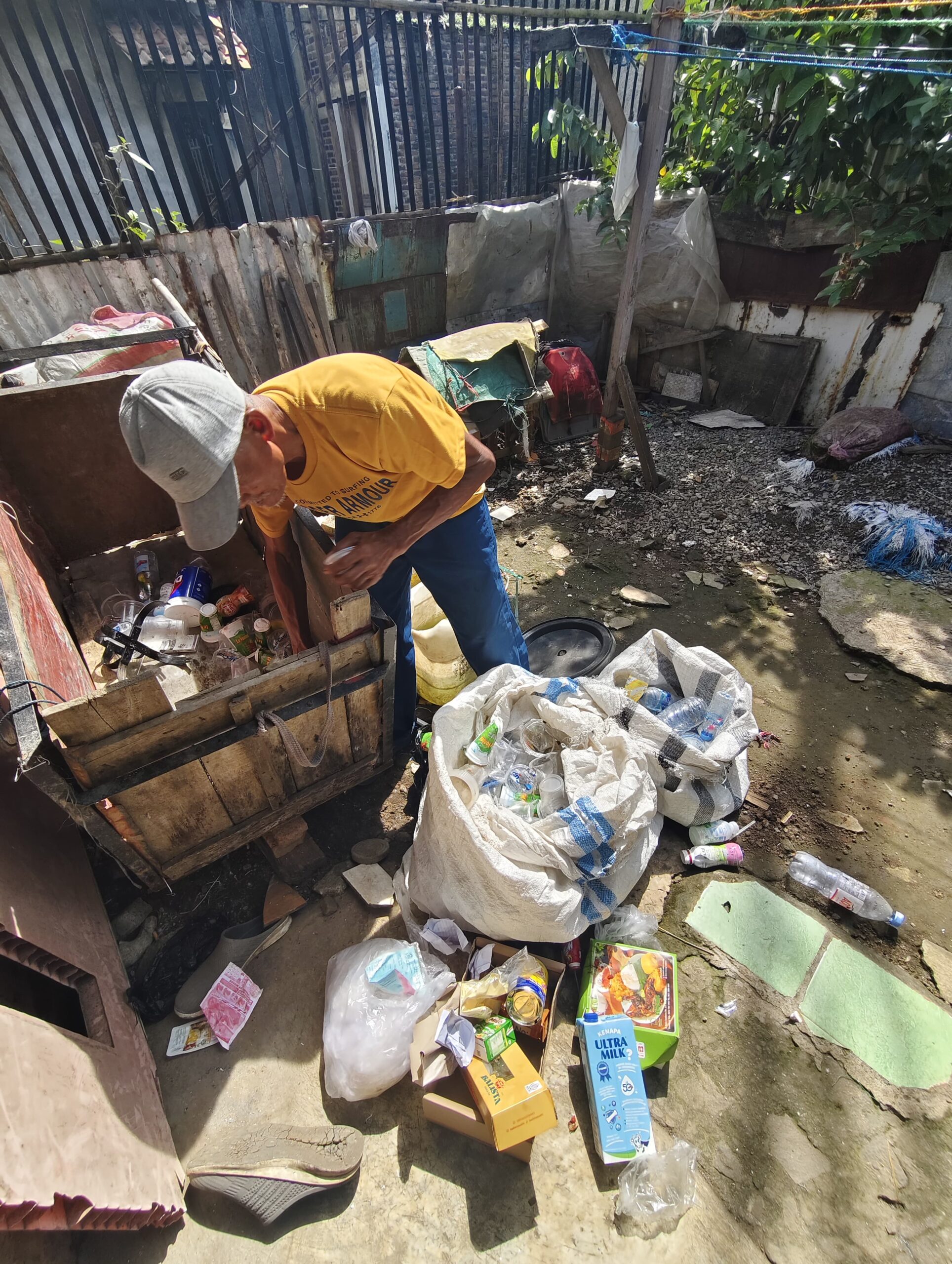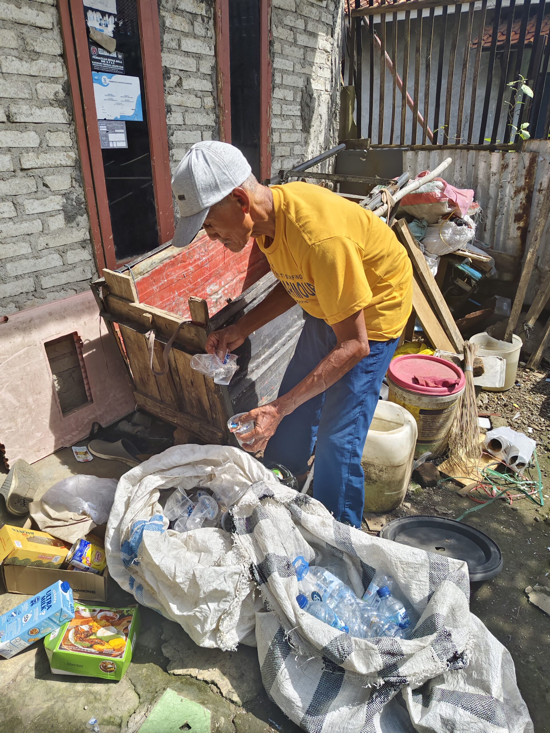 Setiap hari, Bah Adi mendorong gerobak kecilnya menyusuri pinggir jalan. Ia mencari botol plastik bekas, kardus, atau kaleng untuk dijual. Dalam seminggu, hasil memulung itu hanya terkumpul sekitar Rp100.000.
