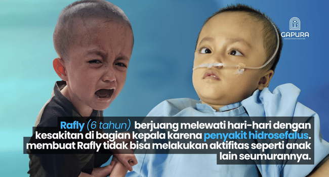 Rafly adalah seorang anak berusia 6 tahun yang harus berjuang melawan penyakit hidrosefalus sejak lahir. Hidrosefalus merupakan kondisi serius akibat penumpukan cairan di dalam otak yang dapat menekan jaringan otak dan mengganggu fungsi saraf. Di usia yang seharusnya dipenuhi keceriaan, Rafly justru harus menjalani pemeriksaan dan perawatan medis secara rutin.