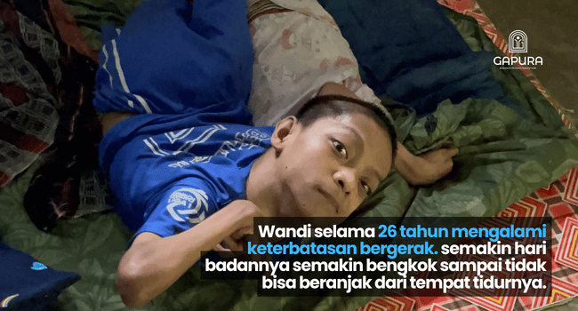 Wandi Sunardi, ( 26 tahun ), telah menjalani hidup dalam kondisi sakit dan ketergantungan total selama bertahun-tahun. Ia tidak mampu melakukan aktivitas dasar seperti makan, mandi, dan buang air tanpa bantuan. Seluruh hidupnya bergantung pada kedua orang tuanya yang telah lanjut usia, yang dengan penuh cinta merawat Wandi setiap hari meski kondisi fisik mereka sendiri semakin melemah.
