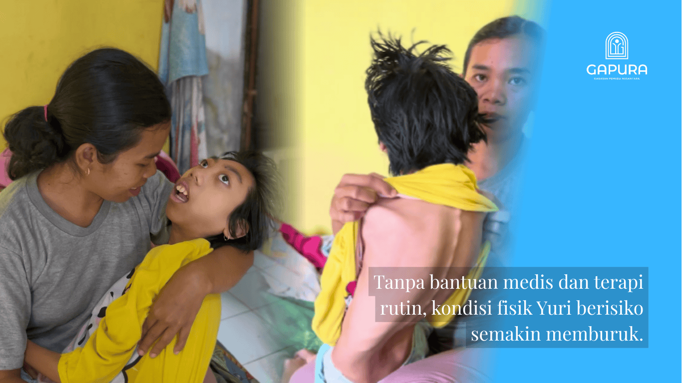 Hari-hari Yuri kini hanya dihabiskan di atas tempat tidur. Tidak ada taman bermain, tidak ada sekolah, tidak ada aktivitas seperti anak-anak lain seusianya. Tanpa dukungan biaya untuk terapi, obat-obatan, dan nutrisi, kondisi Yuri berisiko semakin memburuk. Kasih sayang keluarga tetap menguatkan, tetapi mereka tidak bisa berjalan sendiri menghadapi keadaan ini.