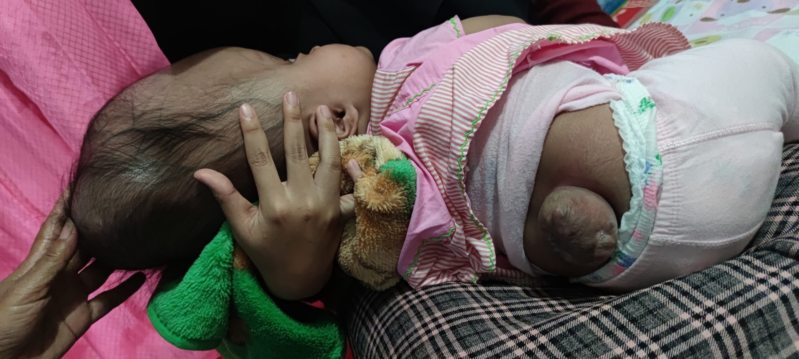 Seperti Putri Maolidia berusia 8 bulan pengidap Pembesaran Kepala, Benjolan diatas tulang ekor serta kelainan kaki kiri (Bengkok). Sejak lahir putri sudah mengidap berbagai kelainan fisik yang sudah terindikasi sejak dalam kandungan 6 bulan.