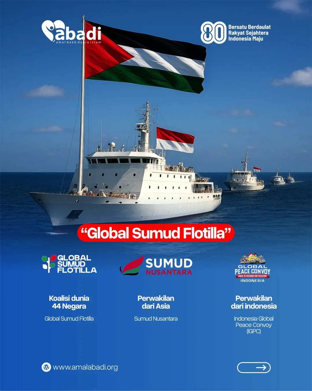 Pada 31 Agustus 2025 nanti seluruh kapal dalam Gerakan Sumud Flotilla akan mulai berlayar ke titik kumpul laut Mediterania kemudian konvoi bersama menuju Gaza. Sahabat, ini saatnya kita terlibat secara nyata, berlayar bersama menembus blokade Gaza. Ini saatnya kita menjadi satu untuk saudara kita di Palestina. Yuk ikut terlibat dan berpartisipasi untuk turut andil mengisi kapal pelayaran Indonesia, mulai dari Rp 50.000 sahabat sudah turut andil dalam menumpas kejahatan atas kemanusiaan yang telah terjadi. Mari layarkan harapan menembus Blokade Gaza!