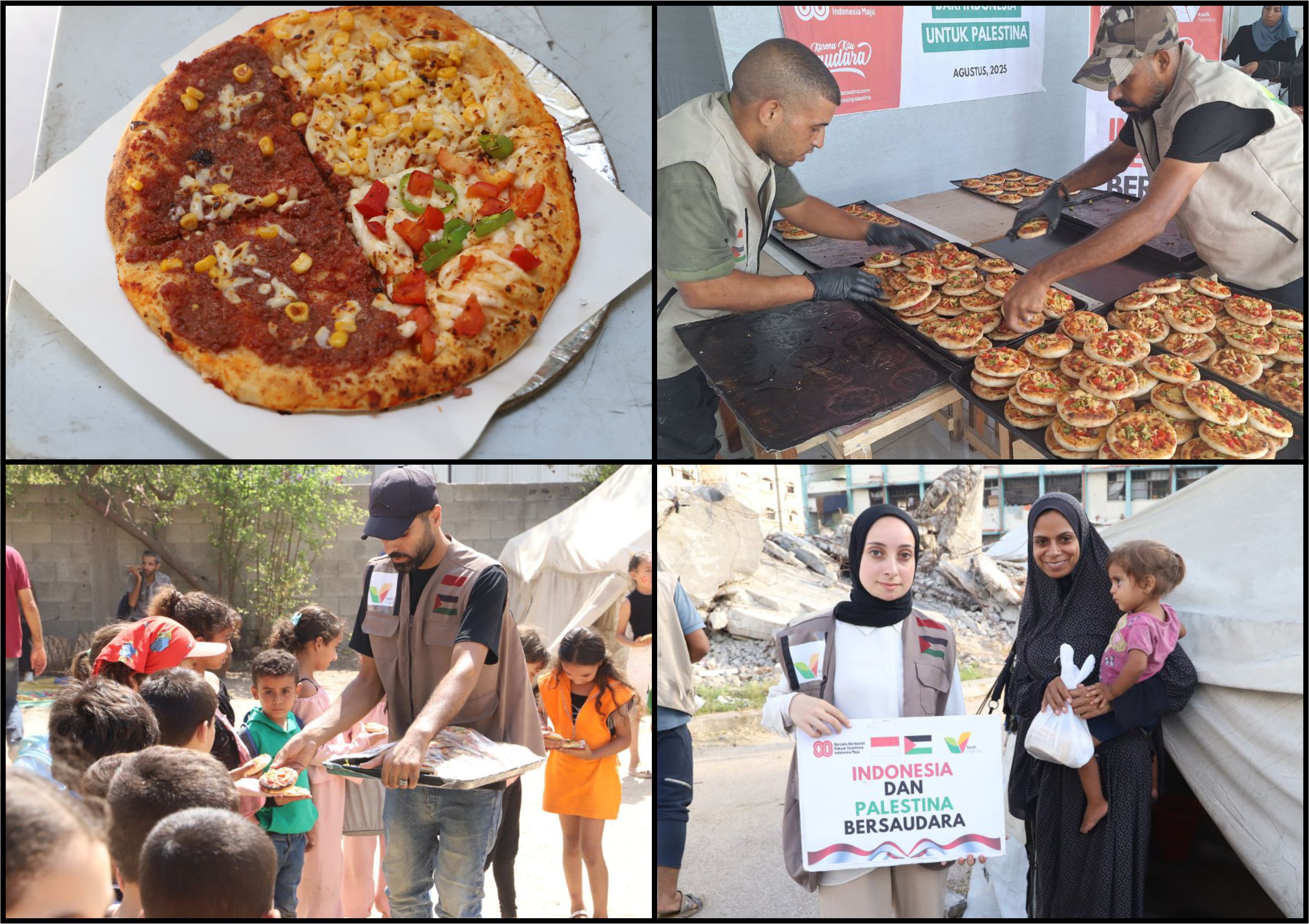 Roti diproduksi di dapur lokal yang masih beroperasi dengan dukungan suplai khusus. Relawan melakukan pengemasan dan distribusi langsung ke keluarga penerima manfaat agar mereka dapat menikmatinya dalam kondisi hangat. Pengungsi di Gaza Palestina menyadari akhirnya malam ini mereka dapat tertidur nyenyak tanpa harus kelaparan.