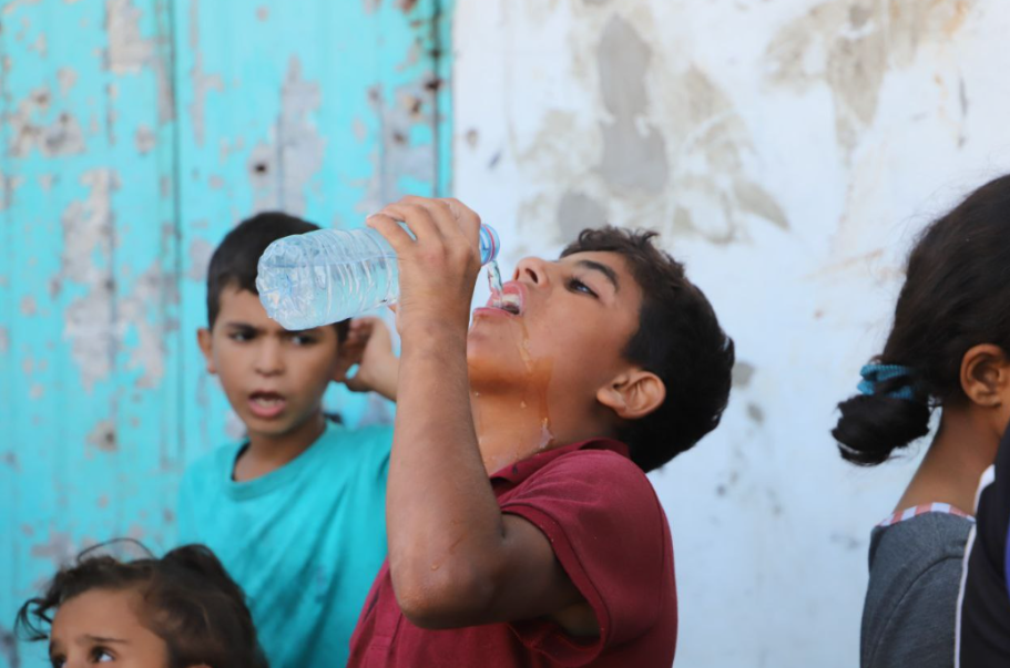 Di atas merupakan potret seorang anak di Palestina yang sedang minum air dari botol kecil di tangannya. Mungkin bagi kita adalah hal yang biasa, namun tidak baginya dan seluruh anak-anak di Gaza, Palestina. Sejak genosida terjadi, air tidak hanya menjadi kebutuhan, namun juga keajaiban yang sulit didapat. Pipa-pipa air yang dulu mengalirkan kehidupan kini hancur menjadi puing. Sumur-sumur dangkal mengering, rusak, atau tercemar. Instalasi air tak lagi berfungsi.
