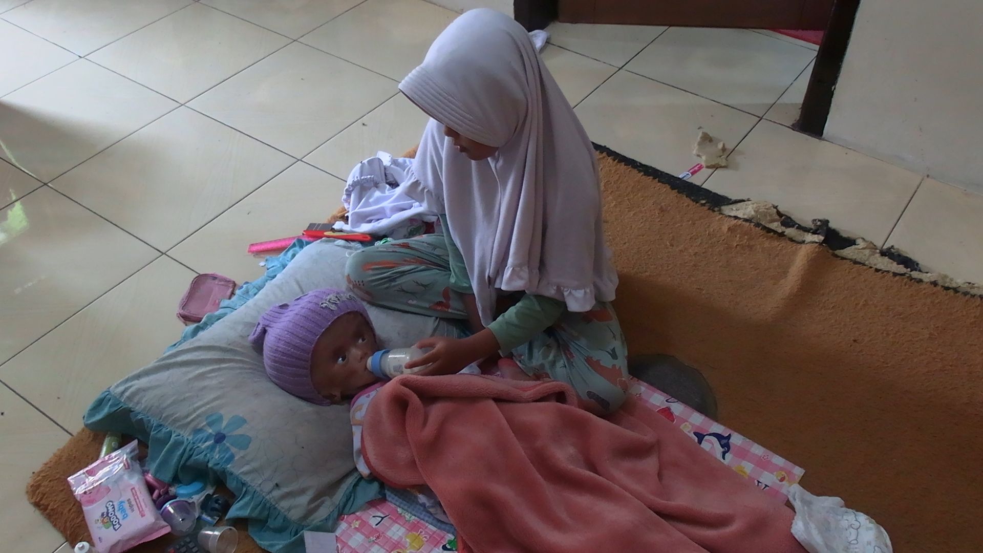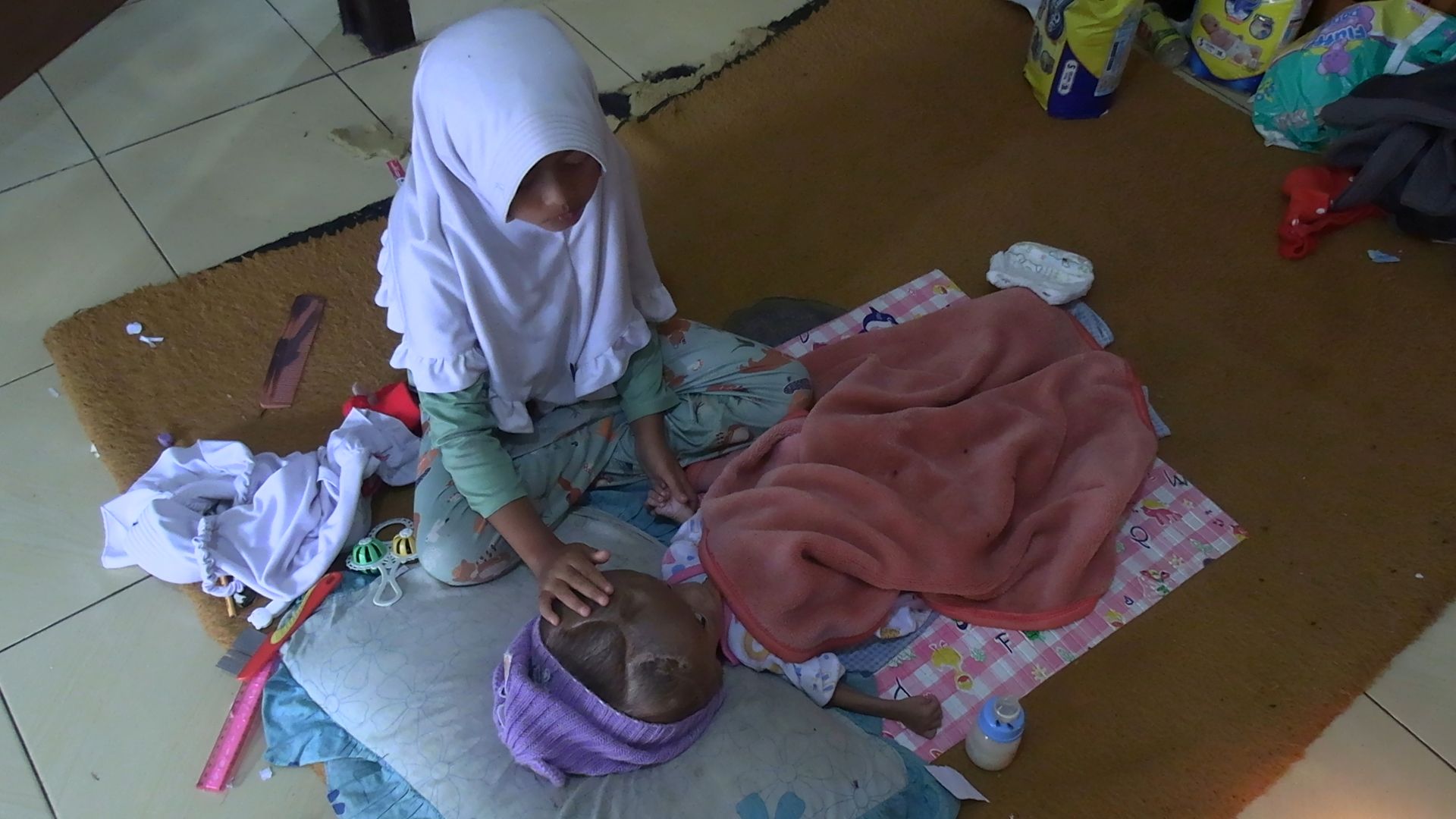 Di rumah, Azhelia bukan hanya seorang kakak. Ia adalah penjaga kecil bagi adiknya, Sheyna, yang baru berusia satu tahun dan mengidap hydrocephalus sejak usia 40 hari. Tubuh mungil Sheyna sudah menjalani empat kali operasi pemasangan selang di kepala, sebuah perjuangan berat yang bahkan orang dewasa pun belum tentu sanggup menjalaninya.