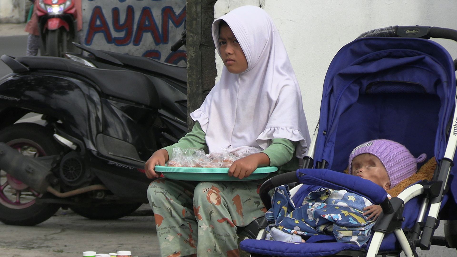 Tak ingin hanya menunggu, Azhelia berinisiatif membantu ekonomi keluarga dengan caranya sendiri. Sepulang sekolah, ia menjajakan minuman gelas seharga seribu rupiah dan tahu krispi secara asongan sederhana. Keuntungannya tak seberapa, tapi setiap koin adalah bentuk cinta seorang anak untuk keluarganya.