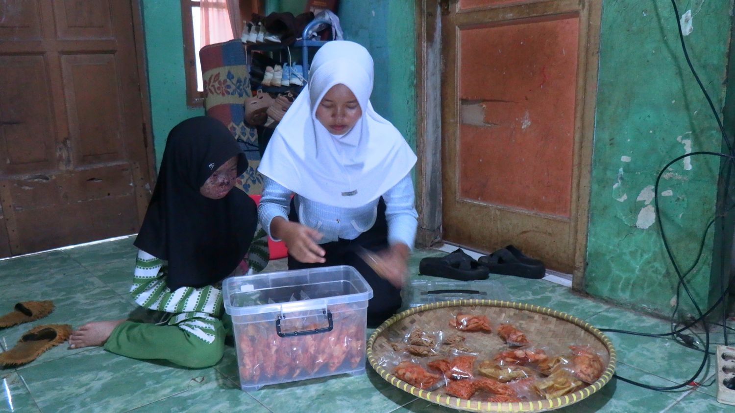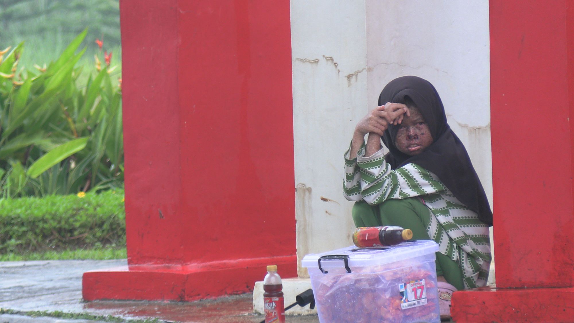 Sering kali mereka berjualan bersama. Aqila ikut menemani, meski harus menahan rasa sakit dan tidak nyaman, demi membantu keluarga. Seperti sore itu, ketika hujan deras memaksa mereka berteduh di bawah gapura pabrik. Novi tetap menggenggam payung, menjaga adiknya, seolah berkata pada dunia bahwa selama ia masih berdiri, Aqila tidak sendirian.