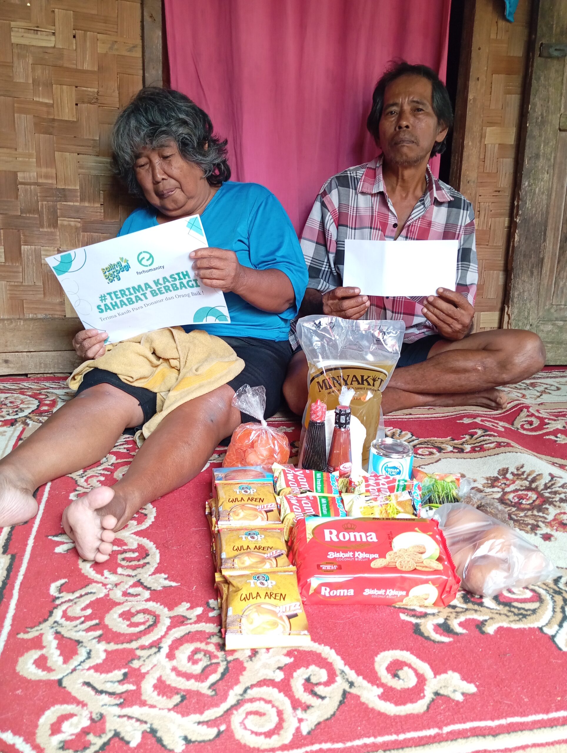 Dana yang disalurkan berupa uang tunai yang akan dimanfaatkan untuk kebutuhan Abah Enda dan Istrinya. Selain itu, kami menyalurkan bahan-bahan pokok.