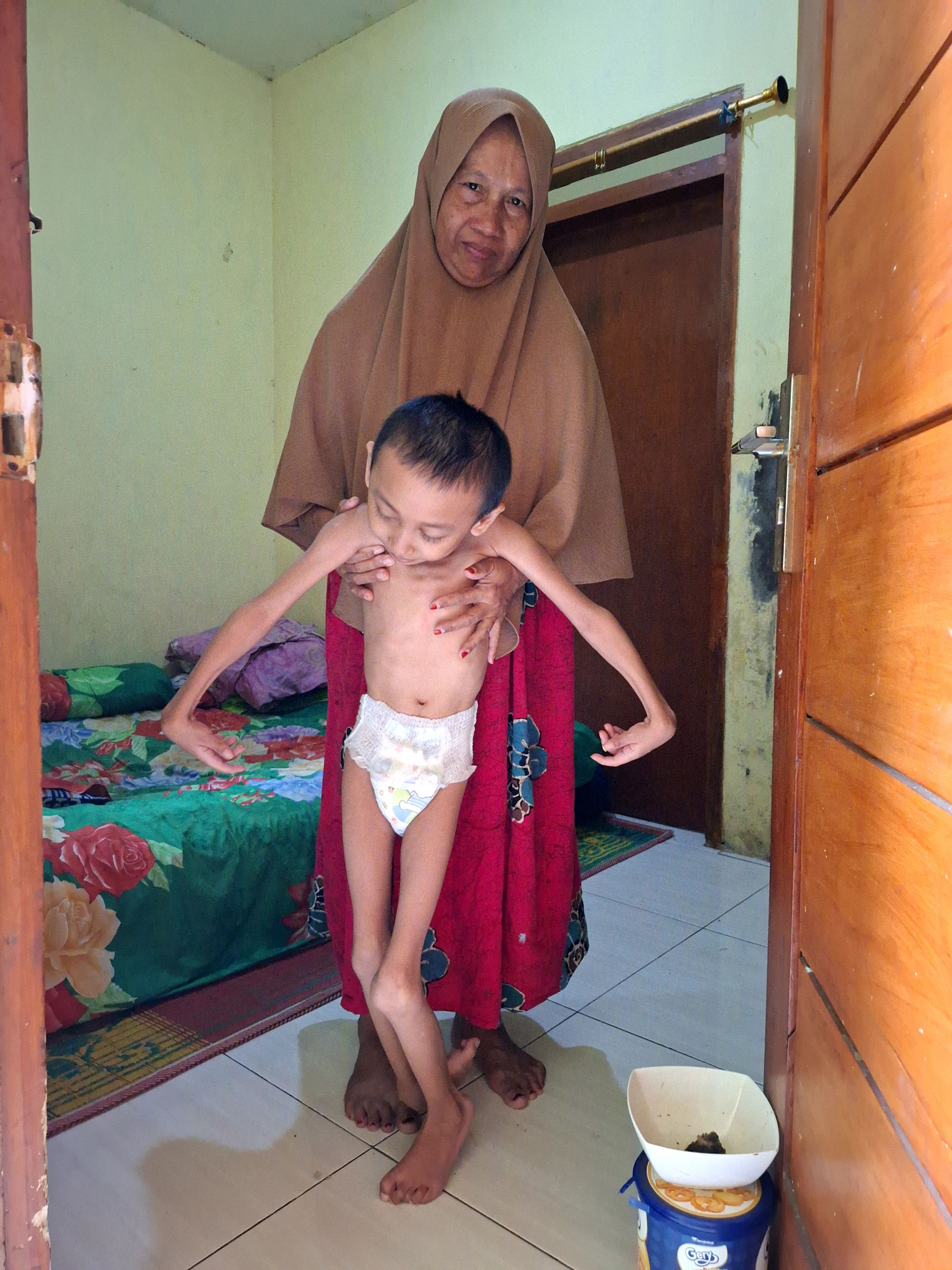 “Dulu orang tua kandung nya gak mau ngurus Tegar, mereka kecewa dengan Tegar yang lahir cacat. Makanya sampai sekarang Tegar Ibu asuh, selama Ibu asuh pun walaupun Tegar secara fisik terbatas, tapi gak pernah ngerepotin Ibu. Maka dari itu Ibu sayang sekali sama Tegar”, Ucap Ibu Maryati