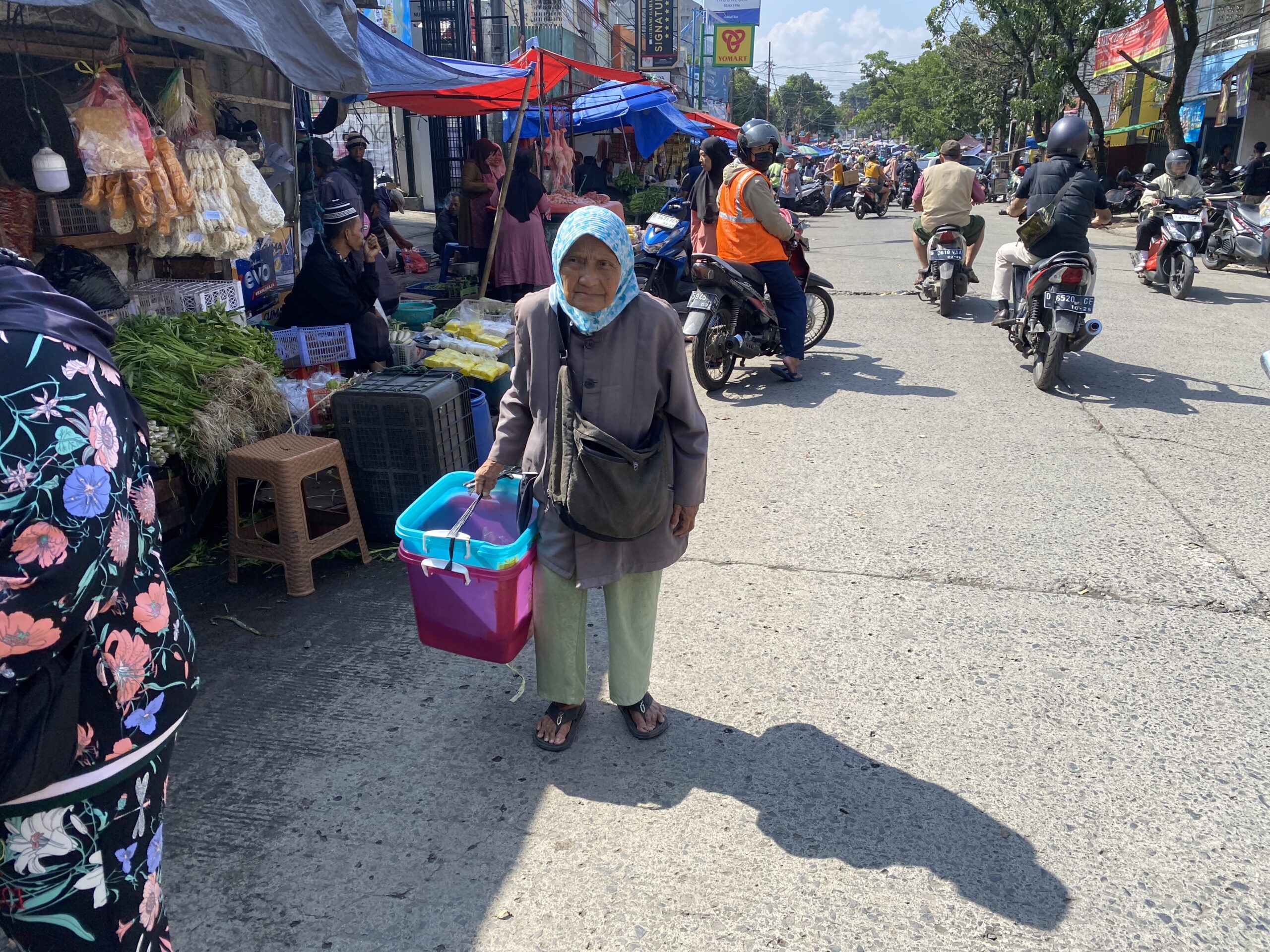 Tak mengenal hari Mak Kurniasih berjalan menjajakan opak dagangannya dari pasar ke pasar dengan tangan keriputnya, bukan tanpa alasan mak hanya ingin kebutuhannya dan keluarga terpenuhi di zaman yang serba sulit “emak sama anak-anak bukan dari orang ada, makanya emak masih jualan ikut bantu buat sehari-hari emak, kebutuhan keluarga sama jajan cucu.”