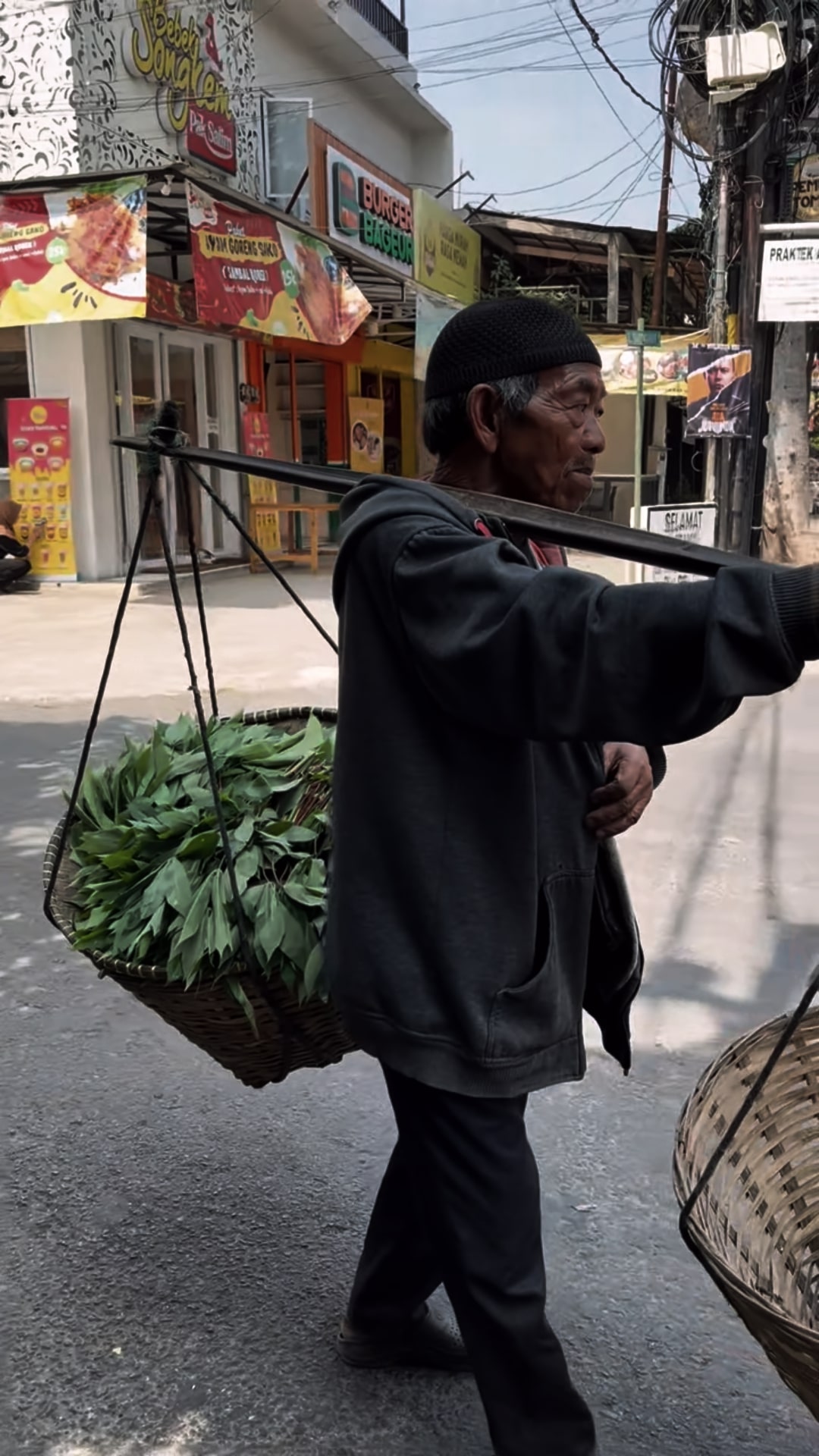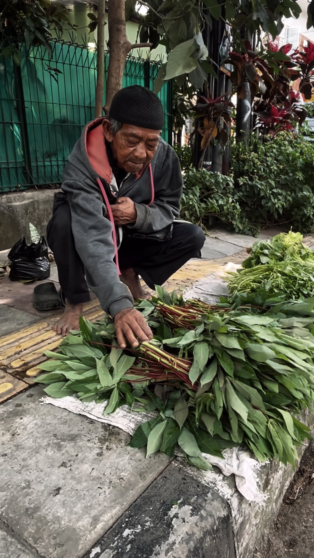 Belasan kilometer Abah berjalan kaki sambil menawarkan sayur yang beliau jual kepada orang-orang yang melewat.