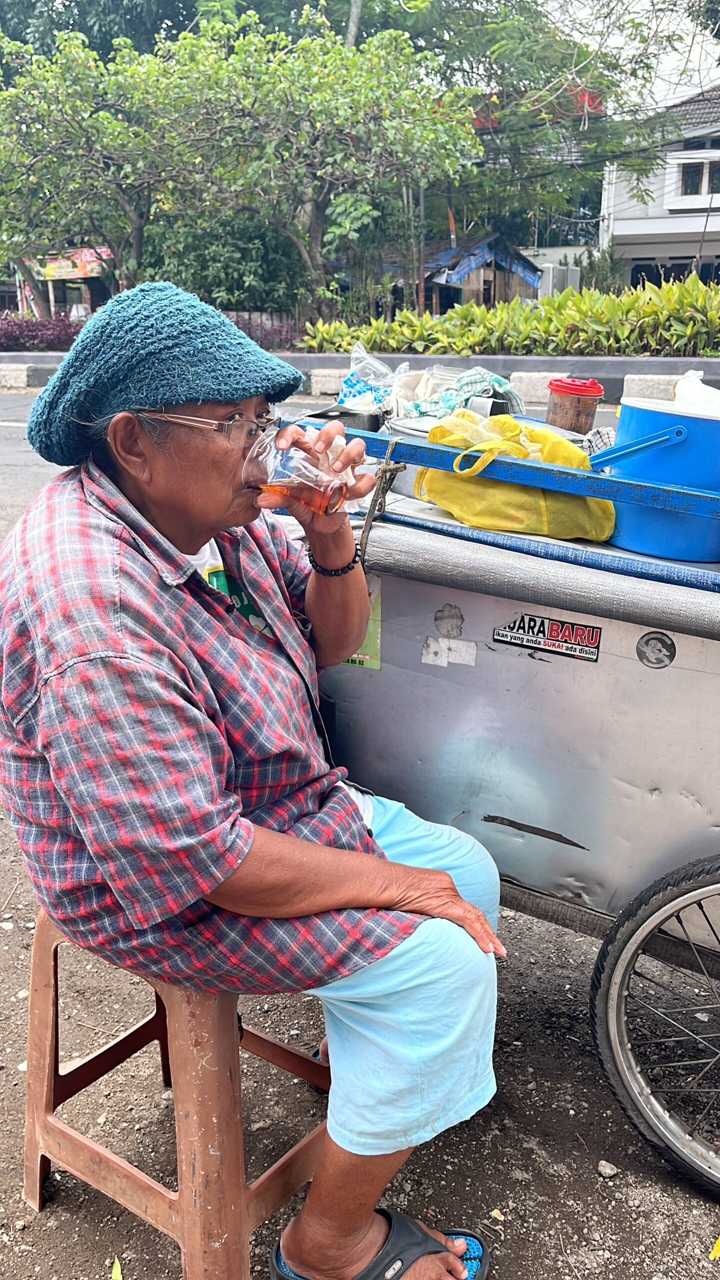 Hidup di usia senja seharusnya bisa dinikmati dengan tenang, tetapi Mbah Sumarni yang kini berusia 69 tahun justru masih harus berjuang setiap hari. Sudah belasan tahun beliau berjualan teh, jamu, kopi, serta gorengan untuk mencukupi kebutuhannya. “Namanya juga hidup, Nak, selama masih bisa berusaha, Mbah bakal terus jualan,” ucapnya sambil tersenyum, meski kelelahan terlihat jelas di wajahnya.