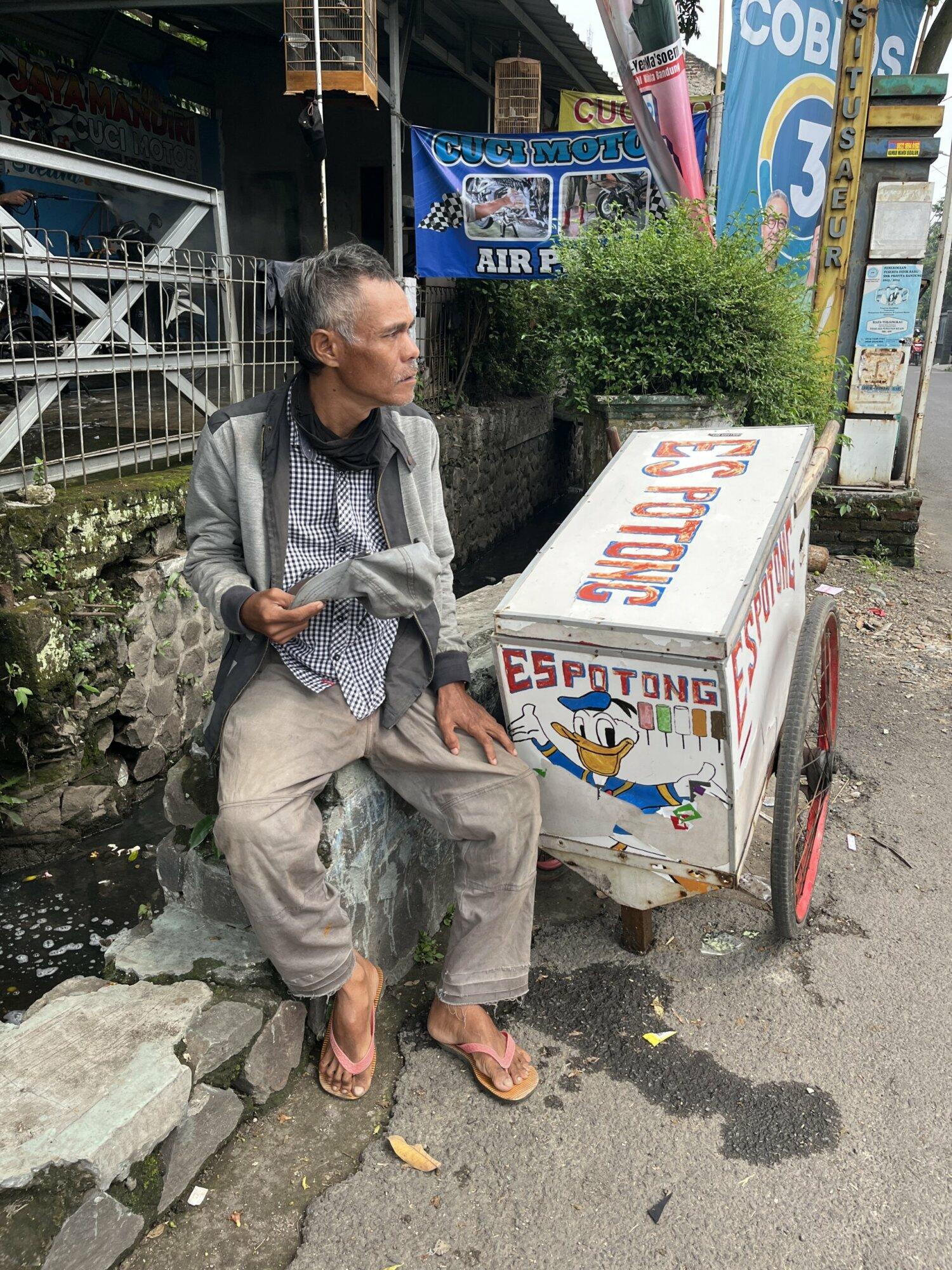 “Di musim hujan gini susah banget buat jualan es, tapi kalau bapak ga jualan bapak ga bisa makan sama ngasih uang ke ibu saya dek.”