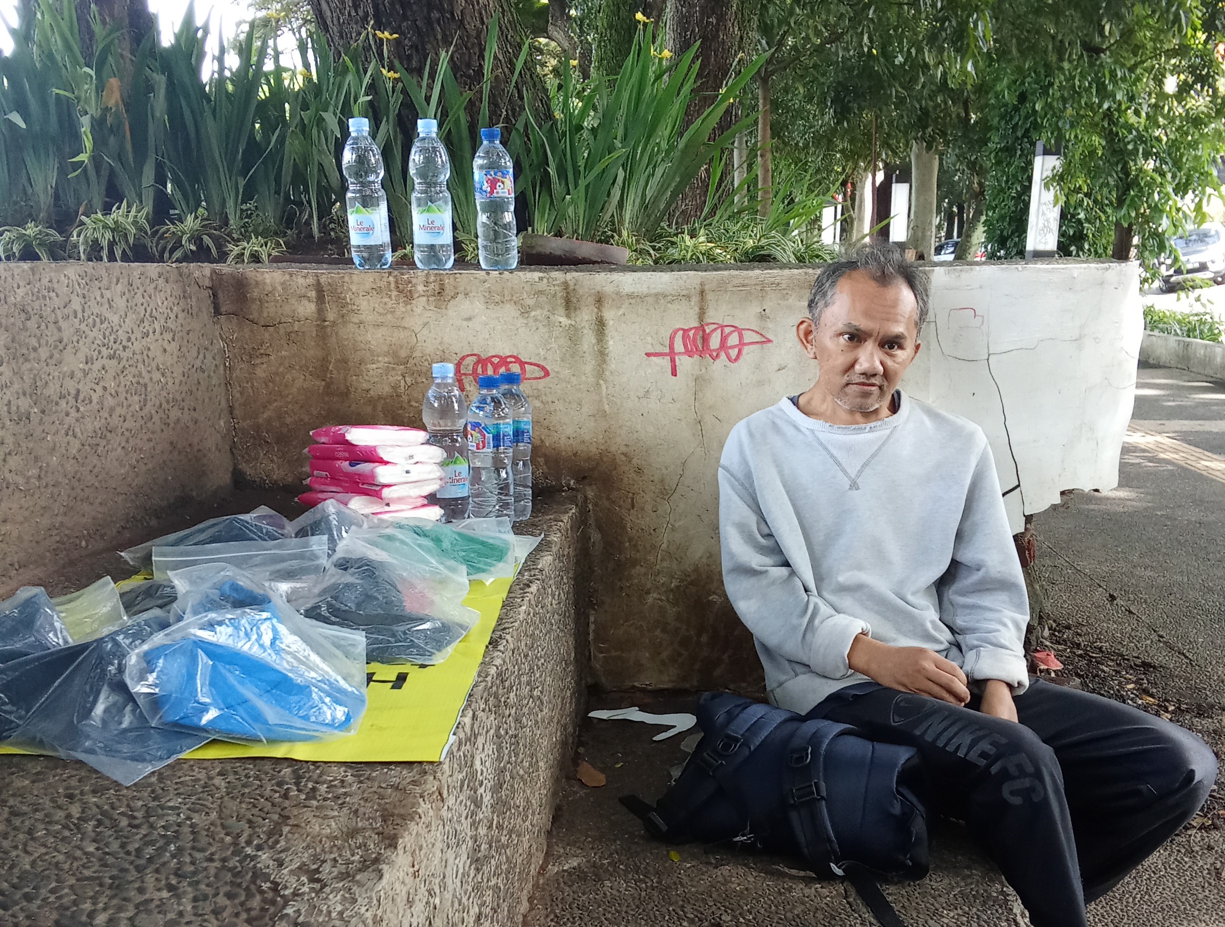 Meski tubuhnya lemah karena riwayat stroke dan kelainan pada tangan sejak lahir, Abah Roni tetap berdiri setiap hari di pinggir trotoar menjual air mineral. Dalam kondisi fisik yang terbatas, ia tak mampu bersaing dengan pedagang lain yang lebih agresif. Kadang, hanya dua botol terjual dalam sehari. Tapi ia tak pernah menyerah demi keluarganya.