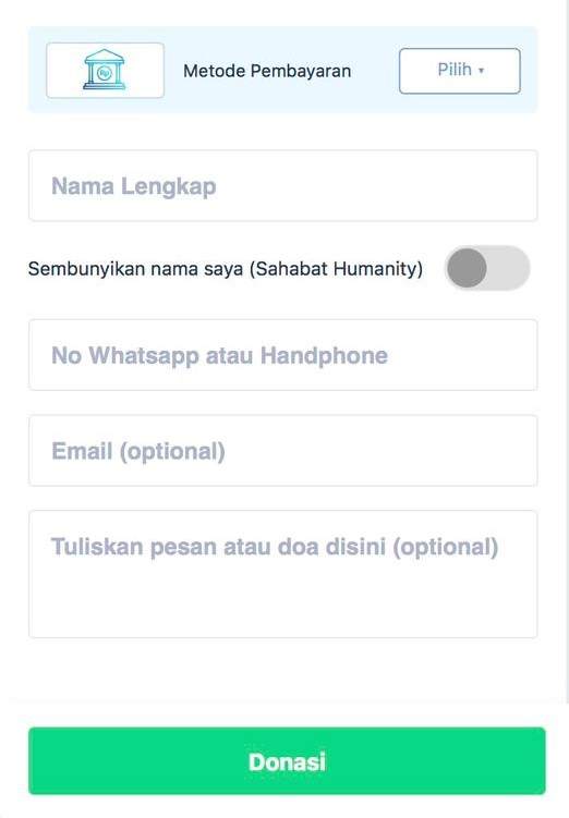 - Pilih ‘Metode Pembayaran’ yang diinginkan dan isi data di kolom yang disediakan. Lalu klik ‘Donasi’