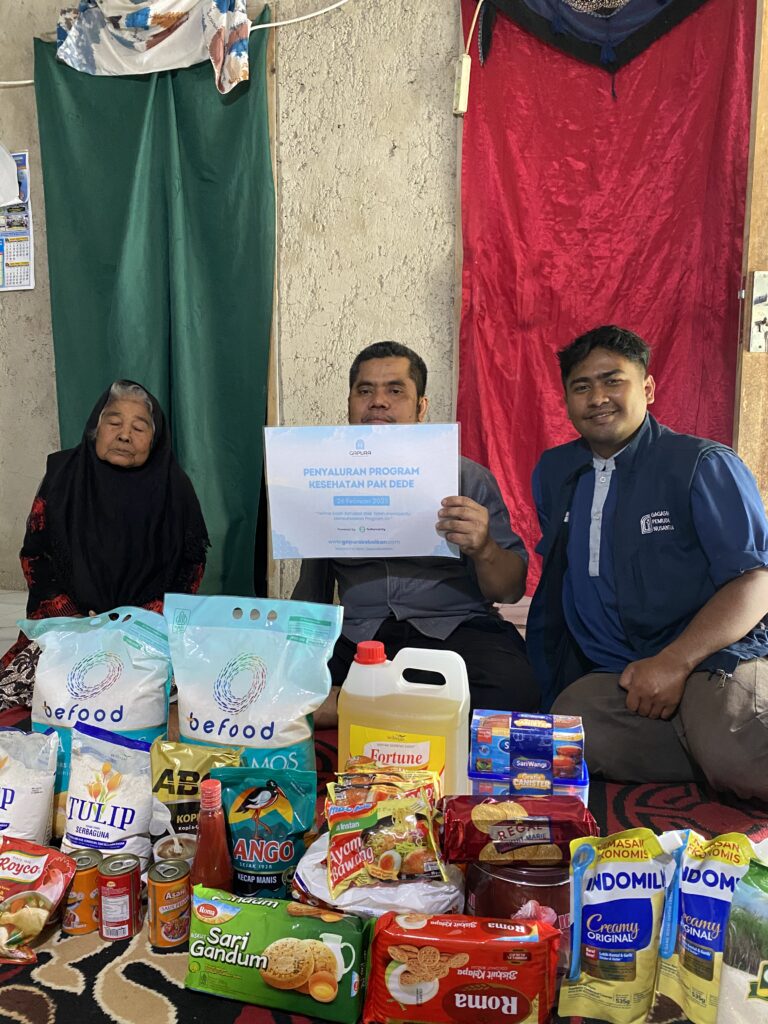 Tidak hanya bantuan kesehatan, GAPURA Kebaikan juga menyalurkan bantuan sembako guna membantu memenuhi kebutuhan sehari-hari Pak Dede dan ibunya selama masa pengobatan dan pemulihan berlangsung.