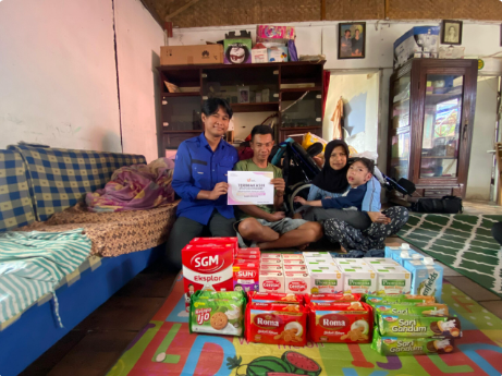 Sebagai bentuk komitmen dalam menghadirkan keberlanjutan program, bantuan juga disalurkan kepada orang tua Salsa dan Ridho dalam bentuk modal usaha warung lengkap serta uang tunai tambahan.