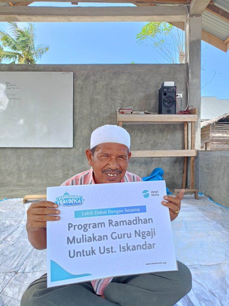 Melihat perjuangan Ustadz Iskandar yang tak kenal lelah dan berani mendobrak keterbatasan fisiknya, For Humanity bersama para donatur dan mitra tergerak untuk meringankan beban pak Ustadz Iskandar, guru ngaji yang tunanetra.